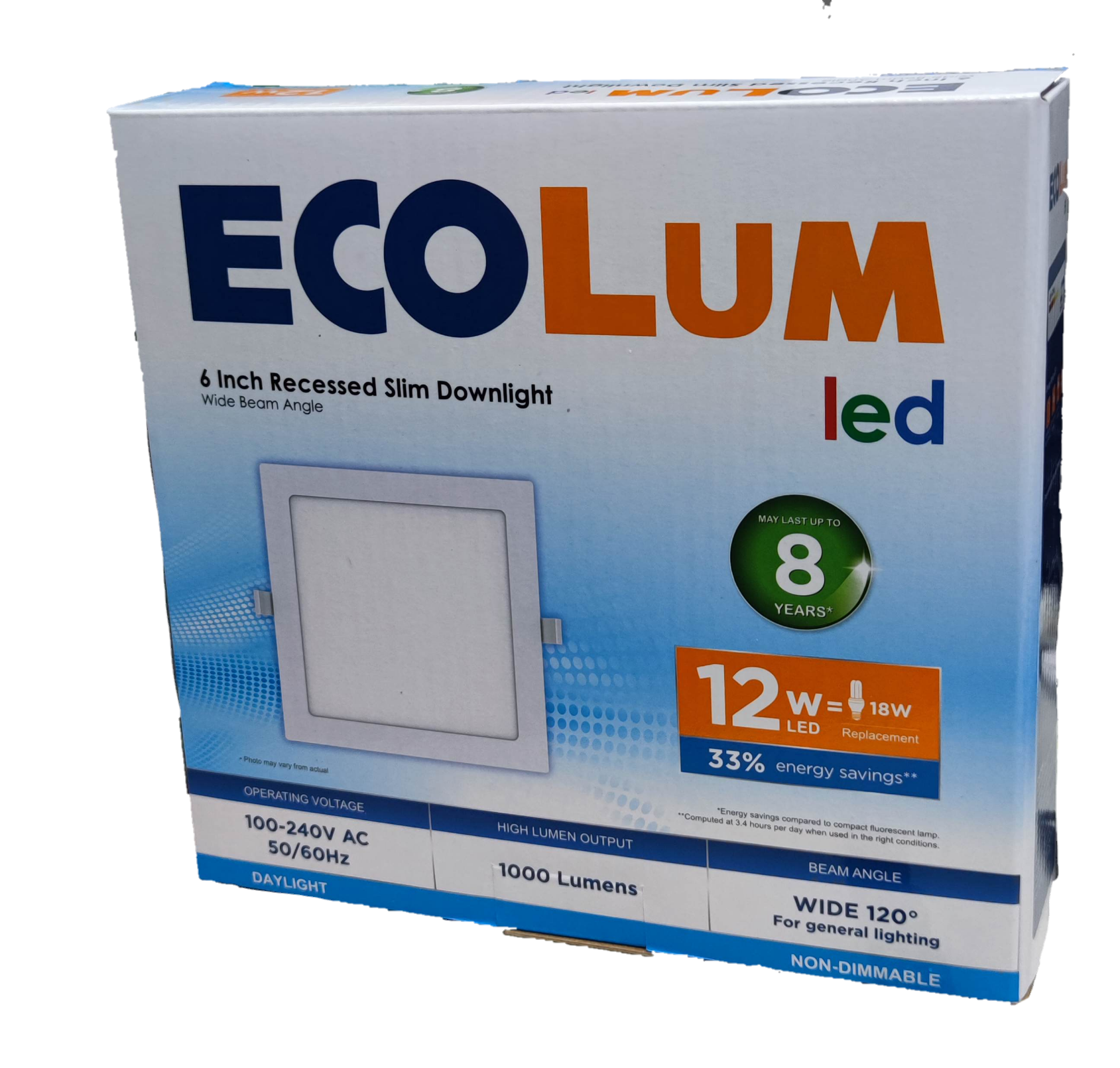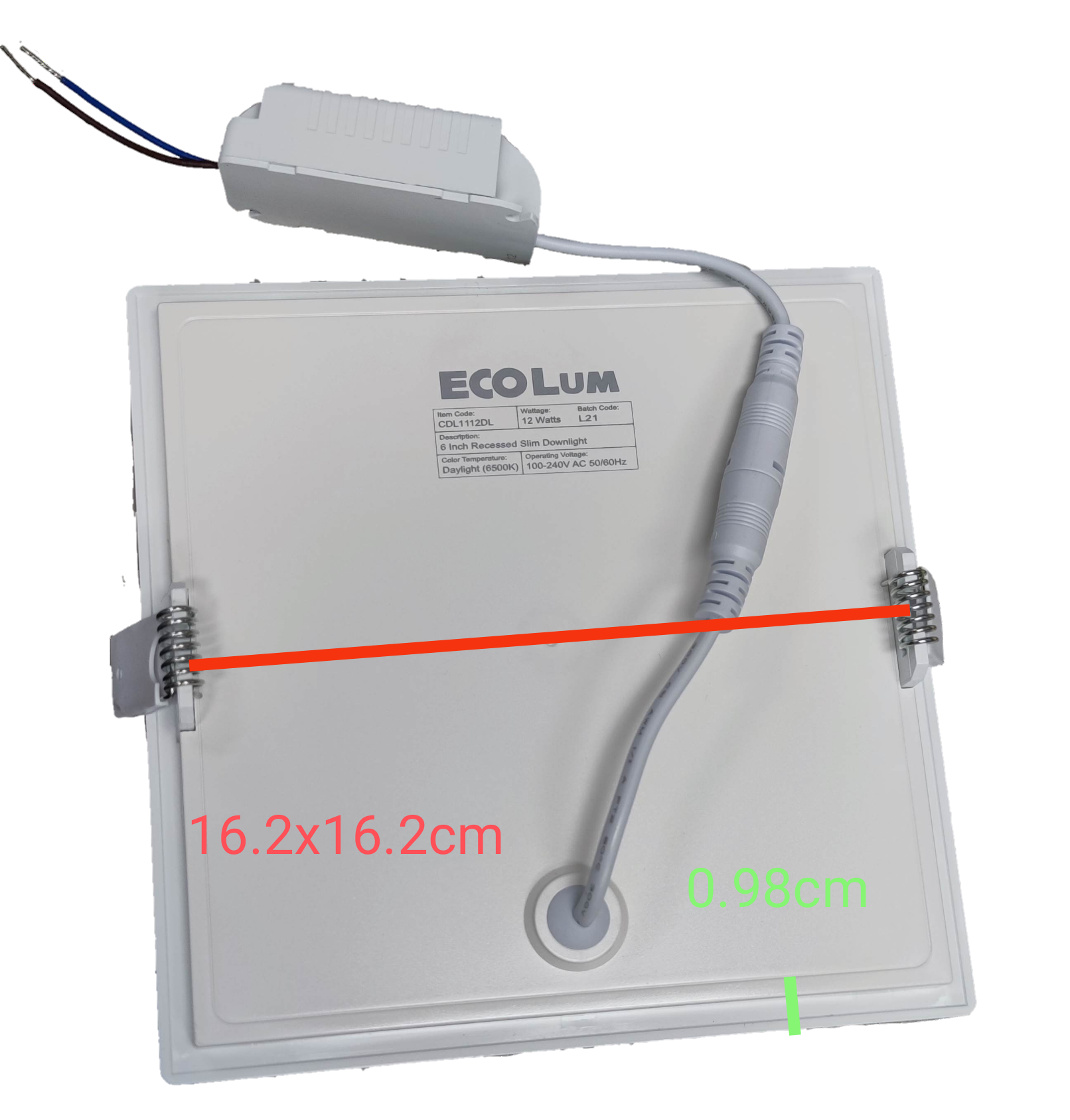 Ecolum 12W LED Square Downlight 220V Recessed ( ECOLUM) 6500K, 12W LED Square Flush Daylight 162x162mm Cut Out