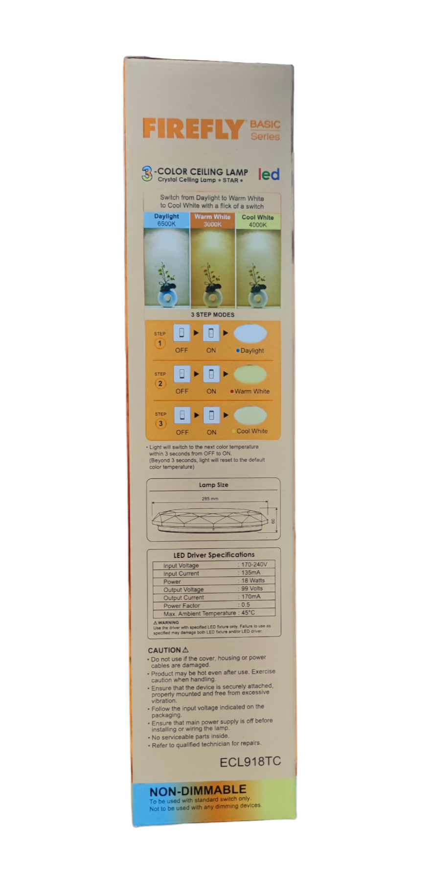 Firefly 18W LED Ceiling Lamp 220V Tri-Color, 18W Tri Color LED Ceiling Lamp ECL918TC