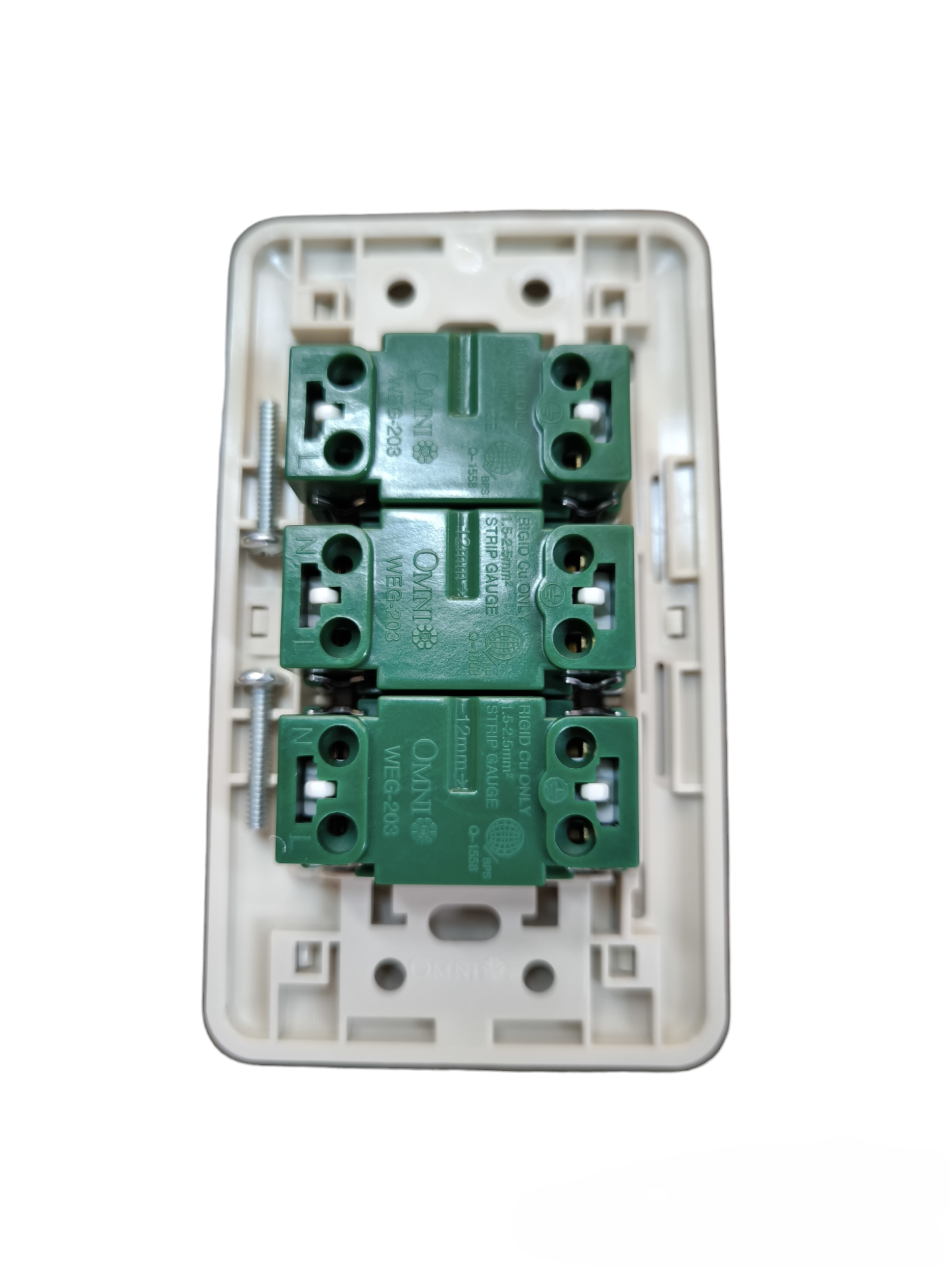 Omni 3 Gang Flat Pin Outlet with Ground with Plate WEP-103+(WEG-203x3)