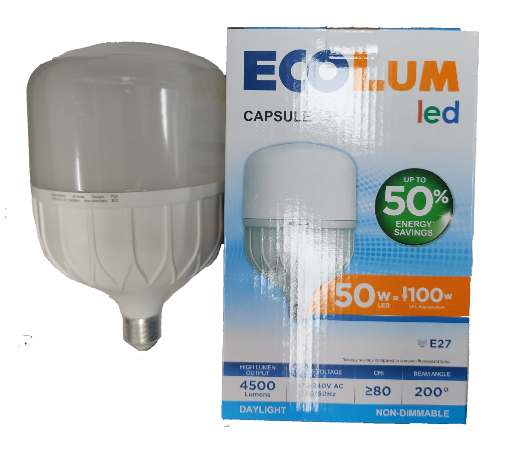 Ecolum 50W LED Capsule E27 220V Daylight 50W LED Bulb