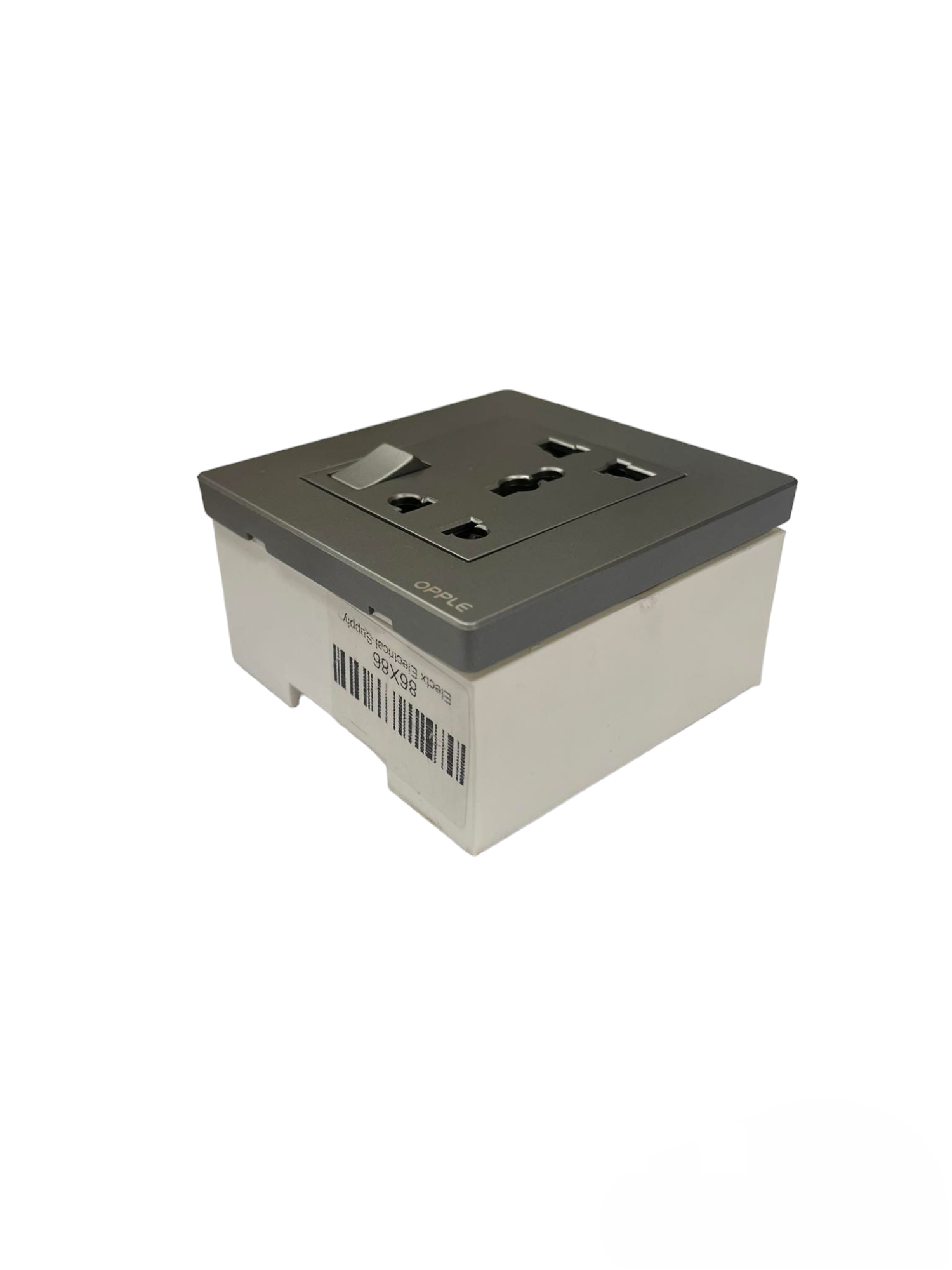 Opple Duplex Universal Outlet with Ground with Switch Control Square Type Gray with Plate Cover and Utility Box 16A 220V F021681A 86X86